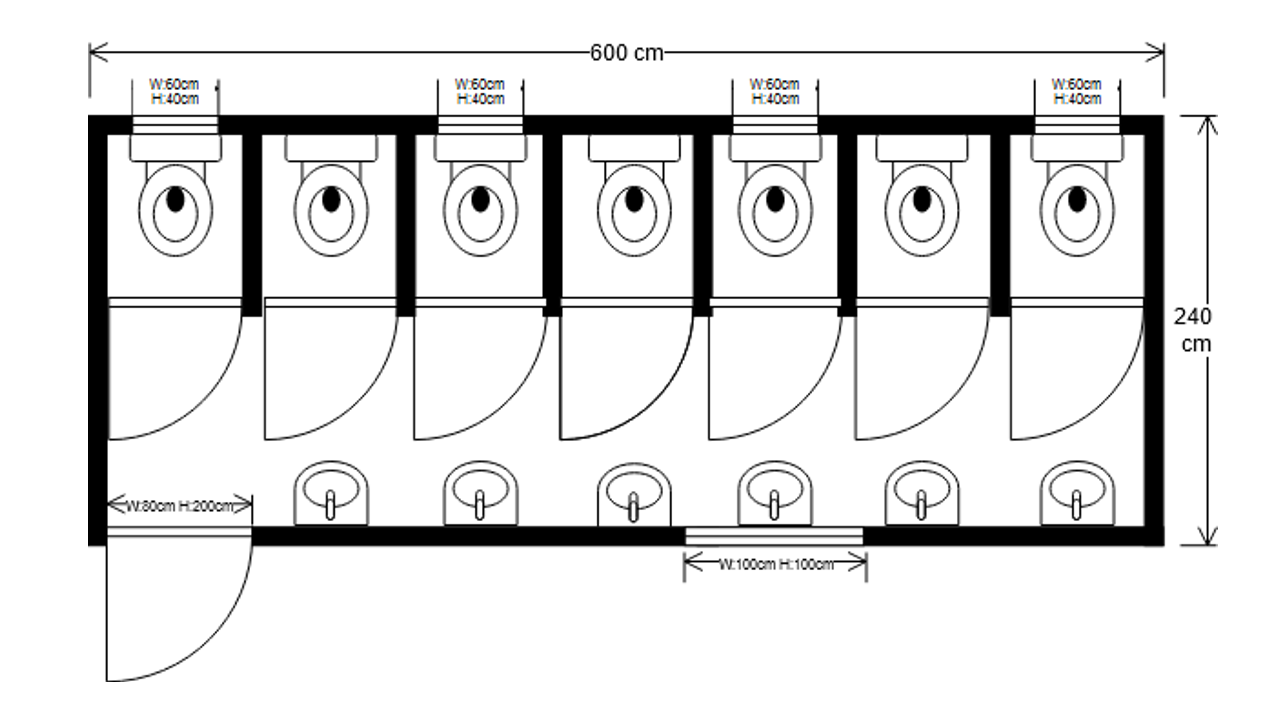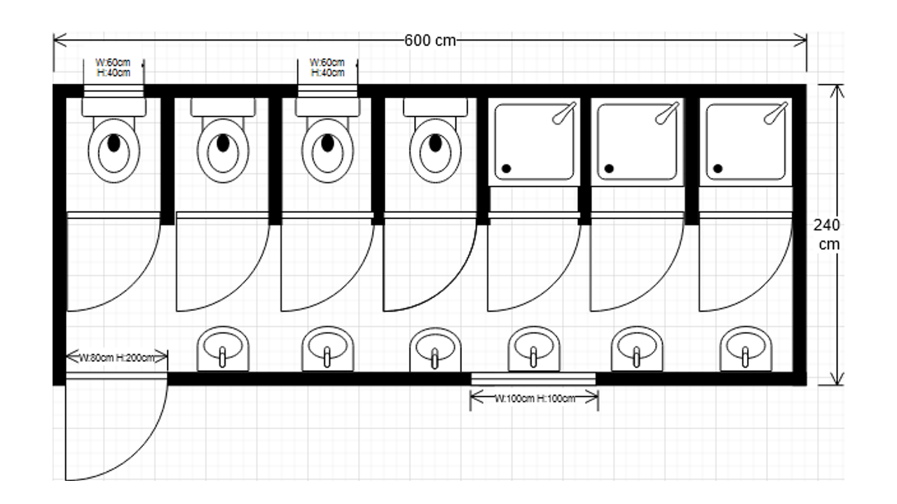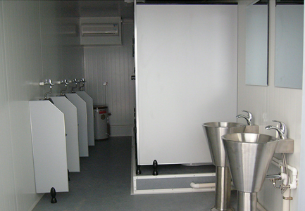 Acestea pot fi echipate cu toalete, dușuri, lavoare, pișoare și toalete pentru persoanele cu dizabilități. (WC clasic, WC stil turcesc, WC din oțel inoxidabil (inox) WC, WC pentru persoane cu dizabilități, pișoar din ceramică, pișoar din oțel inoxidabil, lighean din ceramică, chiuvetă din oțel inoxidabil, dulap pentru lavoar, sistem de încălzire apă)